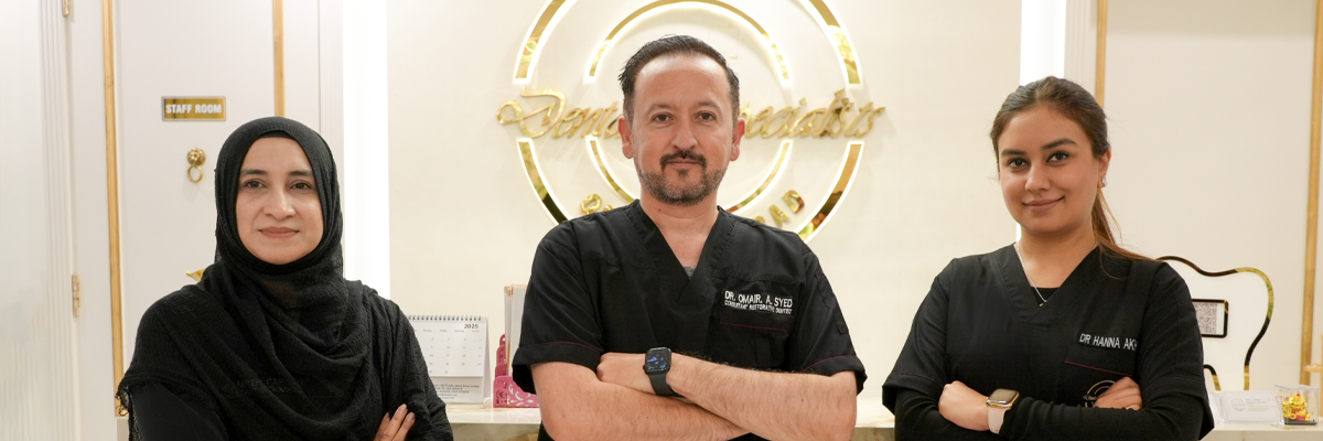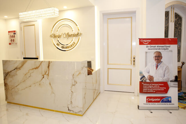 Dr. Omair, a Restorative and Cosmetic dentist with 18 years of experience in Islamabad, he specializes in full arch restorations, implants, veneers, and root canal treatments. Holding a Master’s Degree in Restorative & Cosmetic Dentistry from England, he caters to embassy and overseas patients seeking his expertise, offering personalized treatment plans tailored to their needs.